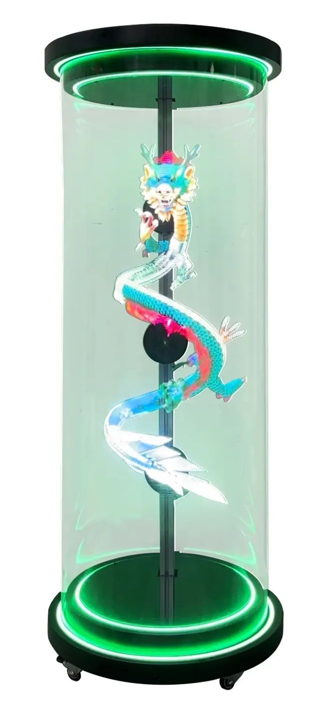 Captivating 360° 3D Hologram Display: Visuals visible from every angle within the enclosure.